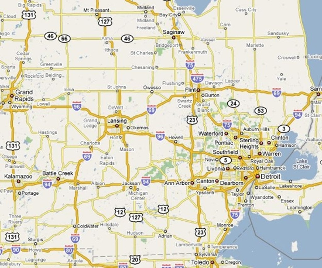 The Little Caesars Amateur Hockey League (LCAHL) Boundaries are defined as Toledo (southern boundary), Port Huron (east) [shown as 'Sarn', on map], Midland /Bay City (north) and Grand Rapids(west).